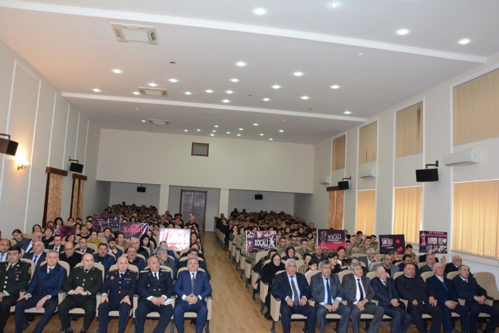 Tədbirdə çıxış edən Tərtər Rayon İcra Hakimiyyətinin başçısı Müstəqim Məmmədov Xocalı faciəsi haqqında ətraflı məlumat verib. Bildirib ki, 1992-ci il fevralın 25-dən 26-na keçən gecə Ermənistan silahlı qüvvələri keçmiş SSRİ-nin Xankəndi şəhərində yerləşən 366-cı motoatıcı alayının zirehli texnikası və hərbi heyətinin köməyi ilə Xocalı şəhərində yüzlərlə günahsız dinc əhaliyə, o cümlədən qadın, qoca və uşaqlara qarşı ən qəddar cinayətlər törədiblər. Soyqırımı nəticəsində 613 Xocalı sakini vəhşicəsinə öldürülüb. Onlardan 63-ü uşaq, 106-sı qadın, 70-i yaşlı insanlardır. O müdhiş gecədə 8 ailə tamamilə məhv edilib, 25 uşaq hər iki valideynini, 130 uşaq valideynlərindən birini itirib.