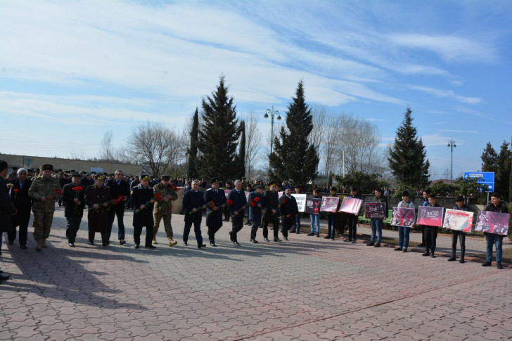 Yeni Azərbaycan Partiyası rayon təşkilatında keçirilən tədbirdə rayon İcra Hakimiyyətinin başçısı Mütəqim Məmmədov çıxış edərək, erməni silahlı qüvvələri tərəfindən Xocalı şəhərində törədilən qırğından, dinc əhaliyə amansız divan tutulmasından danışıb, gənclərə tariximizi dərindən öyrənməyi, xalqımızın başına gətirilən faciələri heç vaxt yaddan çıxarmamağı tövsiyə edib. Sonra Xocalı faciəsi ilə bağlı nümayiş olunan ədəbi-bədii kompozisiyanın iştirakçılarına fəxri fərmanlar təqdim edilib.