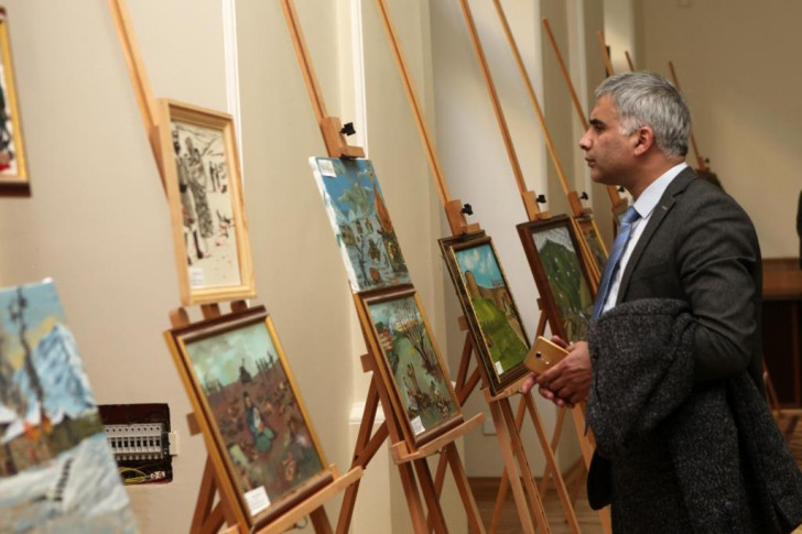 Sağlamlıq imkanları məhdud gənclərin Xocalı soyqırımına həsr olunmuş rəsm əsərləri sərgilənib