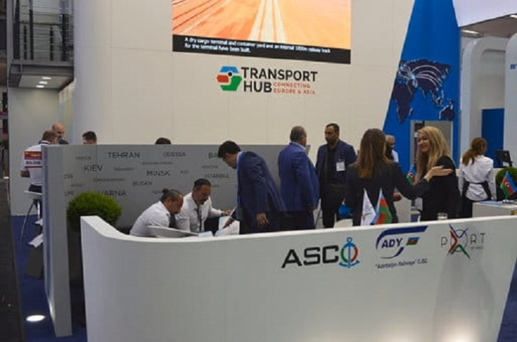 Messe Münhen mərkəzində təşkil olunan sərgidə ölkəmizi “Azərbaycan Xəzər Dəniz Gəmiçiliyi” QSC (ASCO), “Azərbaycan Dəmir Yolları” QSC və Bakı Beynəlxalq Dəniz Ticarət Limanı vahid milli stenddə təmsil edir. Stenddə hər üç şirkətin nümayəndələri sərgi iştirakçılarına ölkəmizin tranzit potensialı, dəmir yolu, dəniz nəqliyyatı ilə daşımalar, limanlarımızın imkanları, Azərbaycandan keçən Beynəlxalq Nəqliyyat Dəhlizləri və Bakı-Tbilisi-Qars dəmir yolu kimi iri infrastruktur layihələri və onların üstünlükləri barədə ətraflı məlumat verərək, əməkdaşlığa dair görüşlər keçirir, danışıqlar aparırlar.