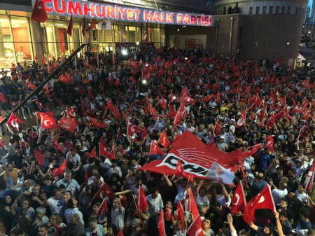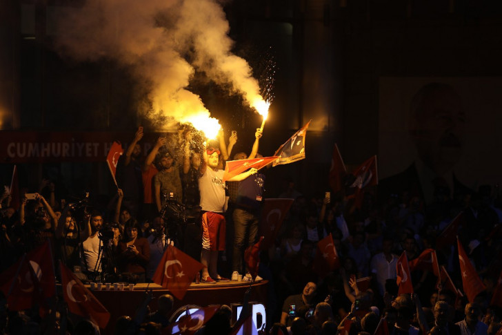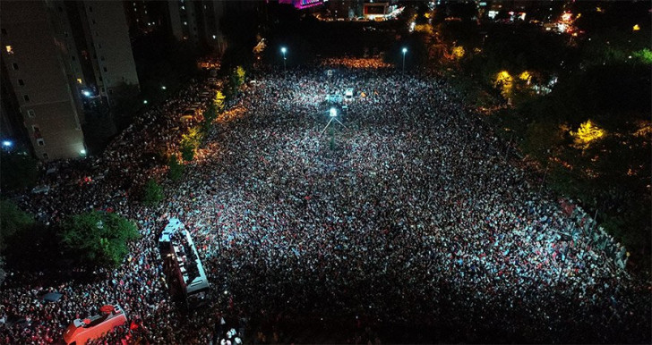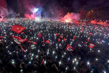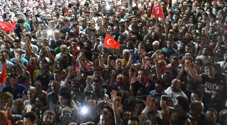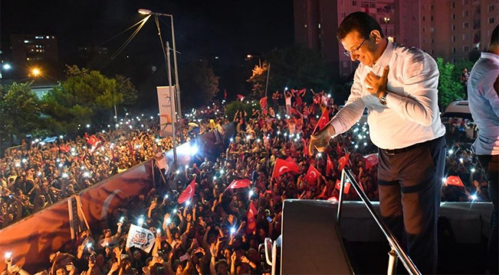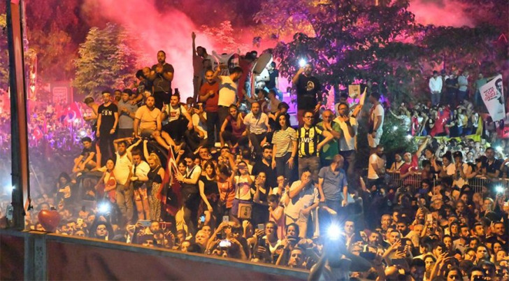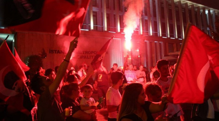 İstanbulda keçirilən təkrar bələdiyyə seçkilərində qalib gəmiş "Millət İttifaqı"nın namizədi Əkrəm İmamoğlunun qələbəsini qeyd etmək üçün yüzminlərlə insan şəhər küçələrinə çıxıb.