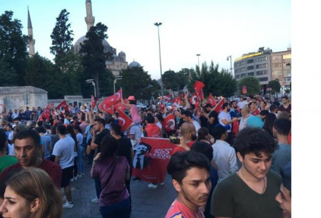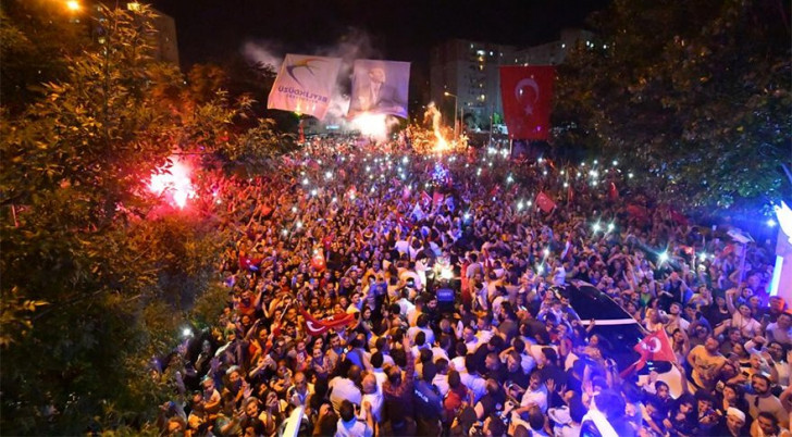 Beylikdüzü ilə yananşı İstabulun müxtəlif bölgələrində minlərə insan küçələrə çıxaraq qələbəni bayram edib. (Qaynarinfo)