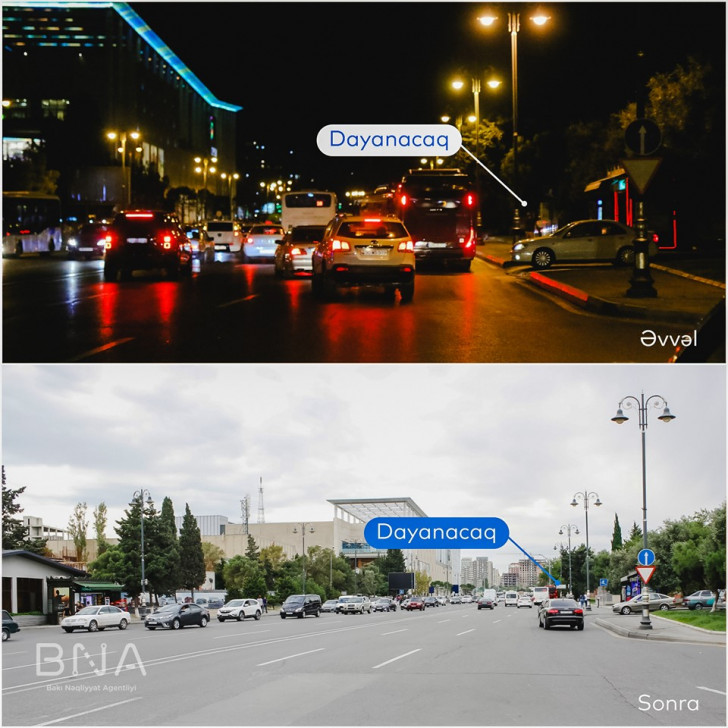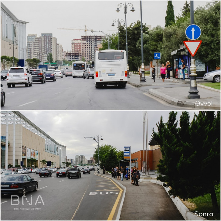 Nəqliyyat axınına maneə yaradan daha bir avtobus dayanacağının yeri dəyişdirilib - FOTOLAR