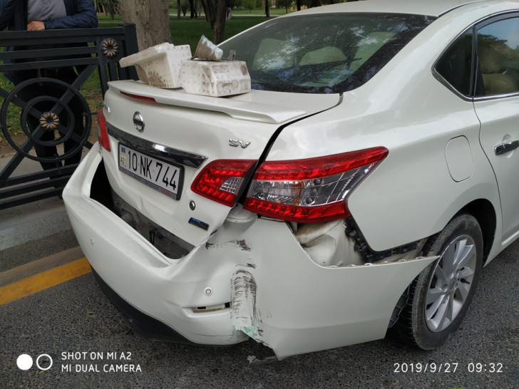 Şikayətçi bildirib ki, 27.09.2019-cu il tarixdə saat 9-10 radələrində Ənvər Qasımzadə küçəsi ilə X.Şuşinski küçələrinin kəsişməsində (Nəsimi rayon İcra Hakimiyyətinin yanı) Opel-vectra 99-NR-194 (1999) nömrə nişanlı avtomobilin sürücüsü Əlican Yusif oğlu Mustafayev sürət həddini aşmaqla və "Yol ver” nişanının tələbini pozaraq ona məxsus "Nissan” Sentra 10-NK-744 (2014) nömrə nişanlı avtomobili ilə toqquşub və nəticədə avtomobilinə ciddi ziyan dəyib.