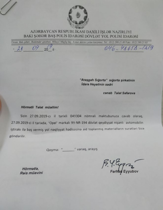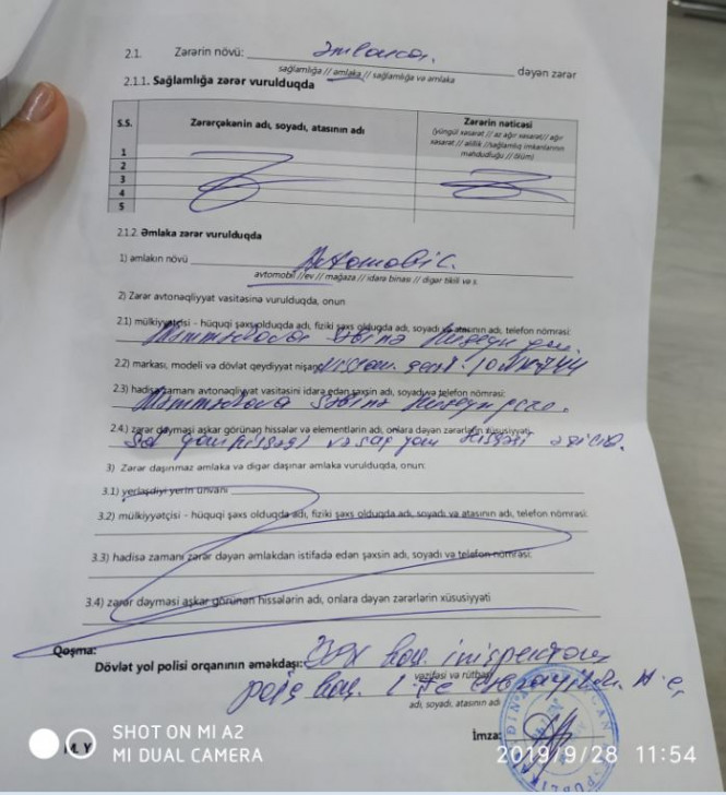Xatırladaq ki, şikayətçi redaksiyamıza bu hadisə ilə bağlı sənəd və qəzalı maşının şəkillərini göndərib. Həmin fotomaterialı təqdim edirik: