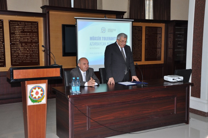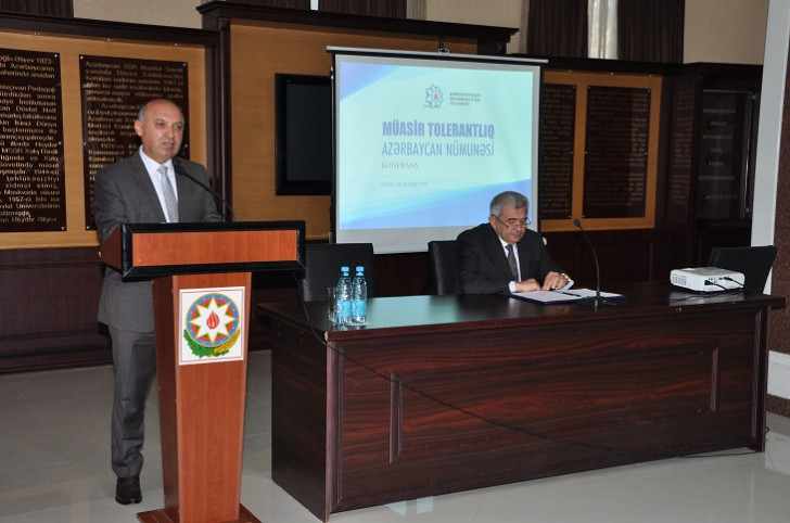DQİDK-nın sədr müavini Səyavuş Heydərov diqqətə çatdırıb ki, dünyada cərəyan edən ictimai-siyasi proseslərə nəzər saldıqda görürük ki, bu gərginliyin əsasını dini və etnik zəmində baş verən münaqişələr təşkil edir. Belə mühitdə tolerantlığın, multikulturalizmin, birgəyaşayışın əhəmiyyəti olduqca vacibdir. Respublikamızda dini etiqad azadlığına təkcə sözdə yox, həm də praktikada geniş imkanlar yaradıldığını bildirən S.Heydərov dövlətin vicdan azadlığının təminatçısı olduğunu söyləyib. Qeyd olunub ki, tolerantlıq örnəyi, sivilizasiyalararası və mədəniyyətlərarası dialoq məkanı kimi tanınan Azərbaycanda dinlər əmin-amanlıq, qarşılıqlı hörmət və etimad şəraitində fəaliyyət göstərir, fərqli mədəniyyətlərin təmsilçiləri olan ayrı-ayrı xalqlar və etnik icmalar ümumi Vətən sevgisi, azərbaycançılıq məfkurəsi ətrafında sarsılmaz birlik və həmrəylik nümayiş etdirirlər. Ölkəmizin inkişafı, qüdrətlənməsi ilə yanaşı, ərazi bütövlüyümüzün qorunmasında da burada yaşayan bütün xalqların və dinlərin nümayəndələri hər zaman qəhrəmanlıq və vətənpərvərlik nümunələri ortaya qoyublar. Komitə rəsmisi belə parlaq nümunələrdən birinin Qarabağ müharibəsi zamanı şücaət göstərən yəhudi əsilli, Azərbaycanın Milli Qəhrəmanı adına layiq görülən Albert Aqarunovun olduğunu deyib və elə keçən həftə Bakıda onun şərəfinə ucaldılan heykəlin açılışını xatırladıb.