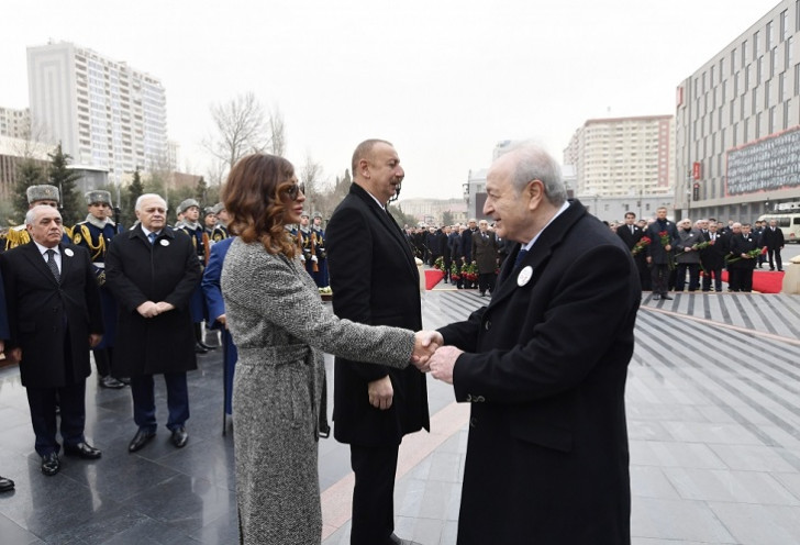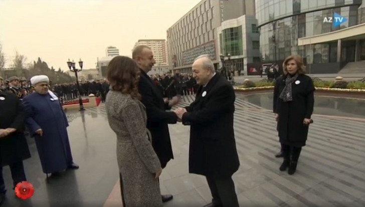 A.Mütəllibov rəsmi dövlət və hökumət nümayəndələri ilə bir yerdə Xətai rayonunda faciə qurbanlarının xatirəsinə ucaldılmış abidəni ziyarət edib.