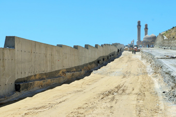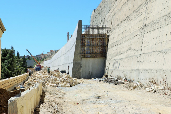 Sözügedən layihəyə uyğun olaraq artıq yamacın aşağı hissəsində svay əsaslı istinad divarının inşası yekunlaşdırılıb. Bunun üçün ərazidə svay vurma işləri aparılıb. Svaylar 1 metr diametrində olmaqla 2 cərgə vurulub və üzərində 1.5 metr qalınlıqda monolit dəmir-beton tava inşa edilib. Tava üzərində 8 metr hündürlükdə istinad divarı tikilib.