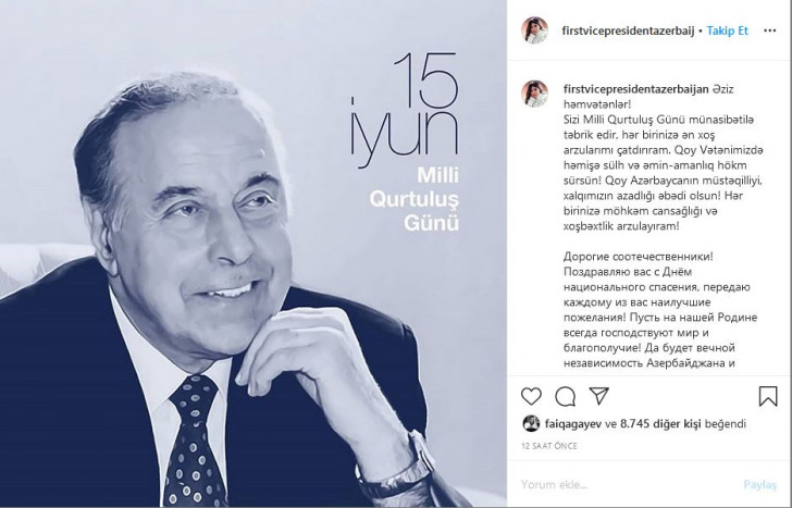 AFN xəbər verir ki, M.Əliyeva sosial media hesabında yazıb: