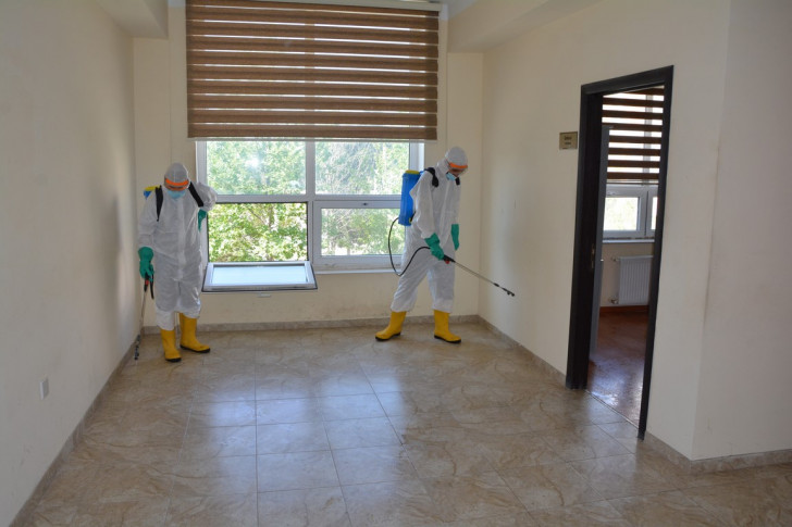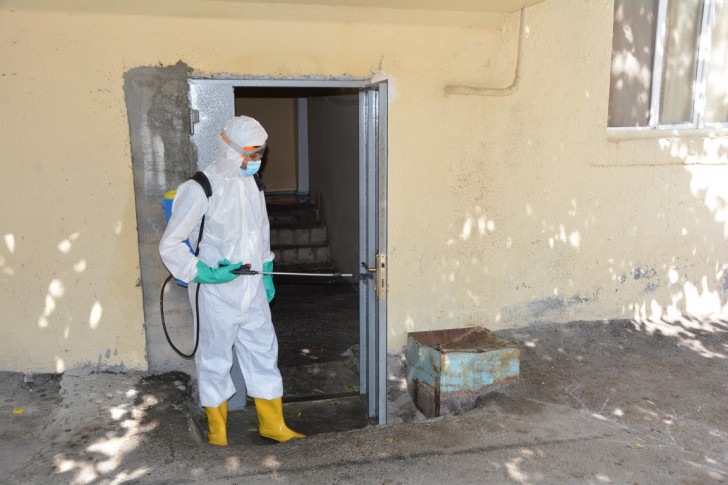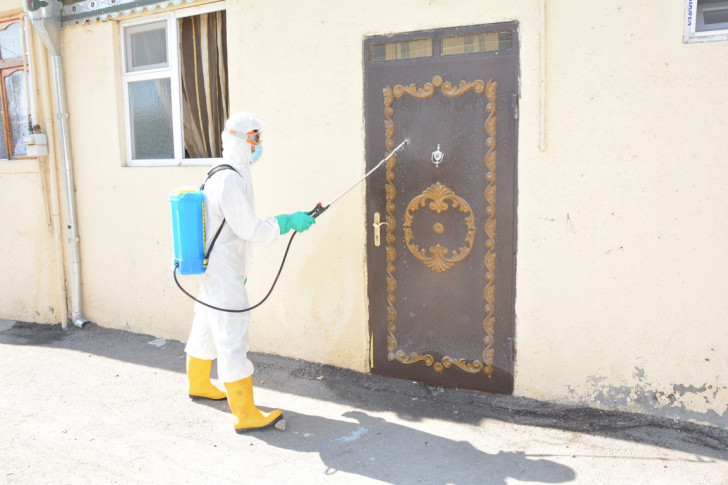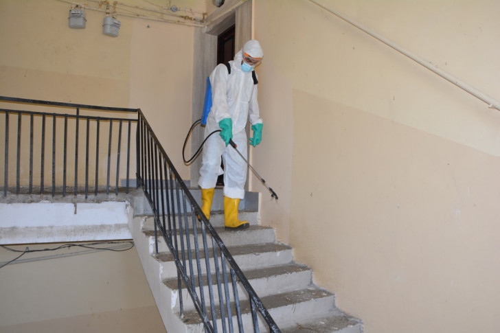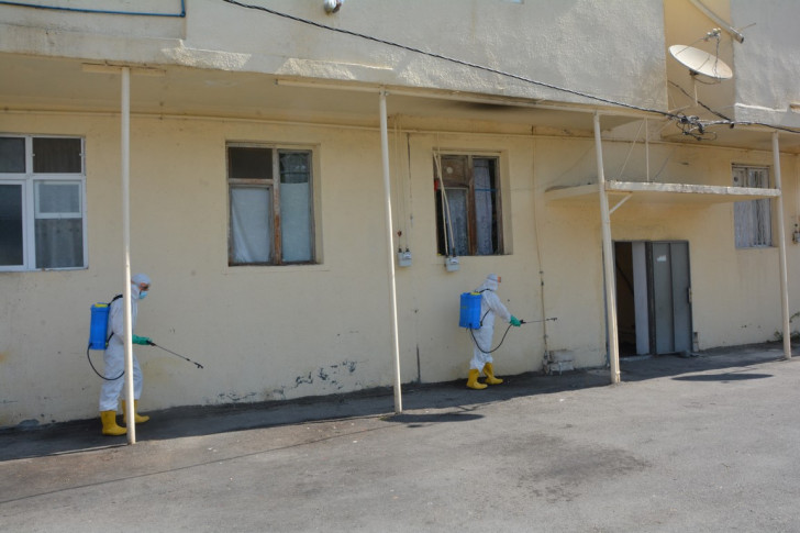 Tərtər rayon İcra Hakimiyyətinin tədbirlər planına uyğun olaraq koronavirus pandemiyası ilə mübarizədə əhalinin sağlamlığının qorunması, infeksiyanın yayılmasının və onun törədə biləcəyi fəsadların qarşısının alınması ilə bağlı rayon ərazisində yerləşən inzibati və çoxmənzilli yaşayış binalarında dezinfeksiya işləri mütəmadi olaraq davam etdirilir.