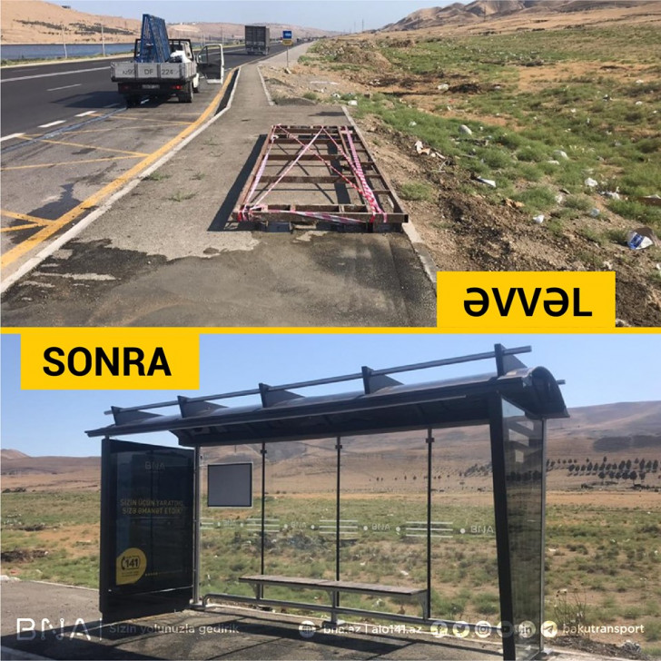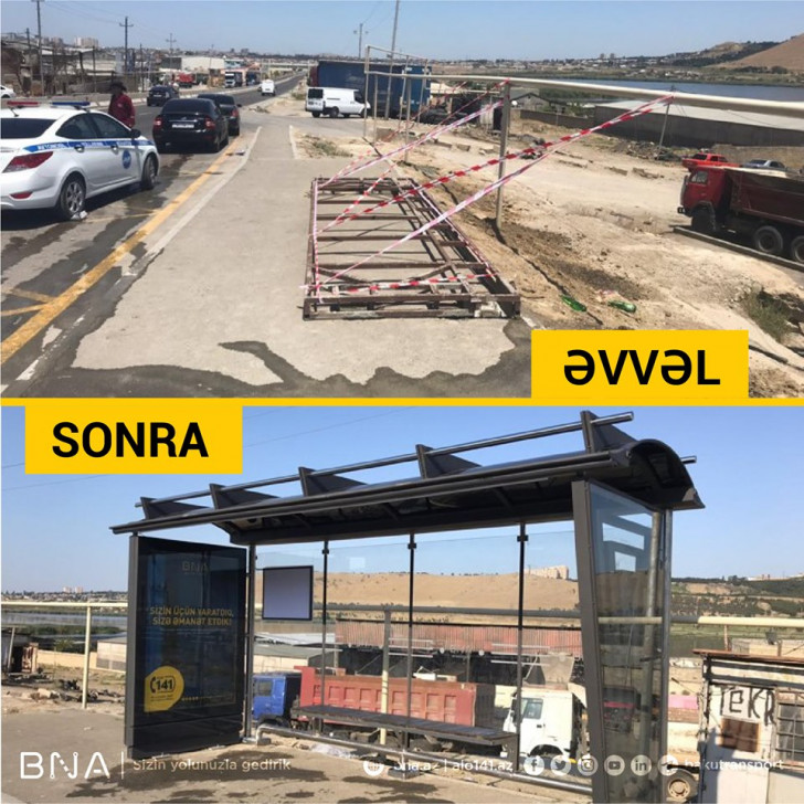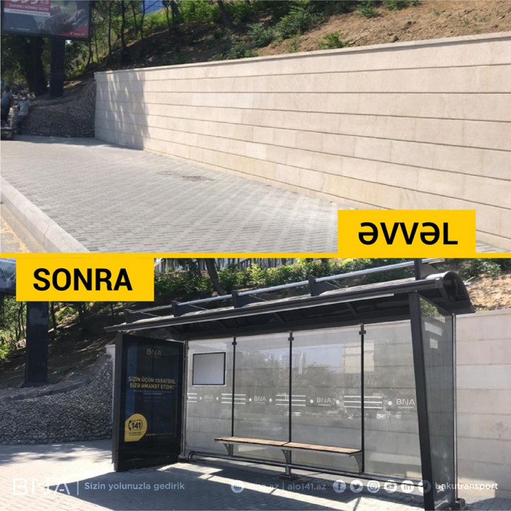 Bu çərçivədə bu ilin 6 ayında 78 ünvanda avtobus dayanacaq məntəqəsi təşkil edilib. 51 ünvanda isə dayanacaq pavilyonu quraşdırılıb ki, bunlardan da 36-sı yeni müasir tipli pavilyondur. İşlərin böyük bir qismi şəhər mərkəzindən kənarda görülüb. Bununla yanaşı Suraxanı, Sabunçu, Xəzər və Qaradağ rayonlarının ərazisində 14 ünvanda yeni dayanacaq məntəqəsinin inşası üçün zəruri işlər görülüb.