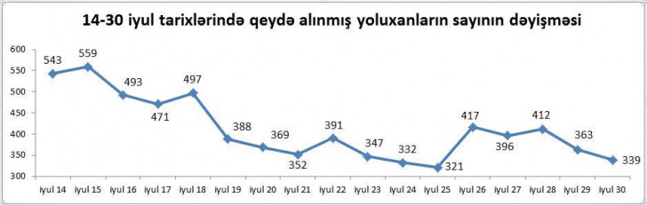 İqtisadçı ekspert Samir Əliyev iyulun 14-30 tarixlərində ölkə üzrə koronavirusa yoluxanların sayının dəyişmə dinamikasının qrafikini tərtib edib.